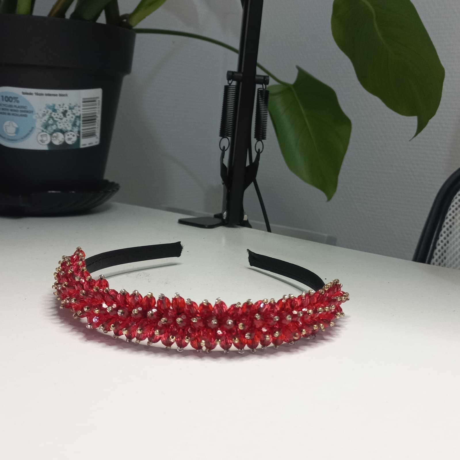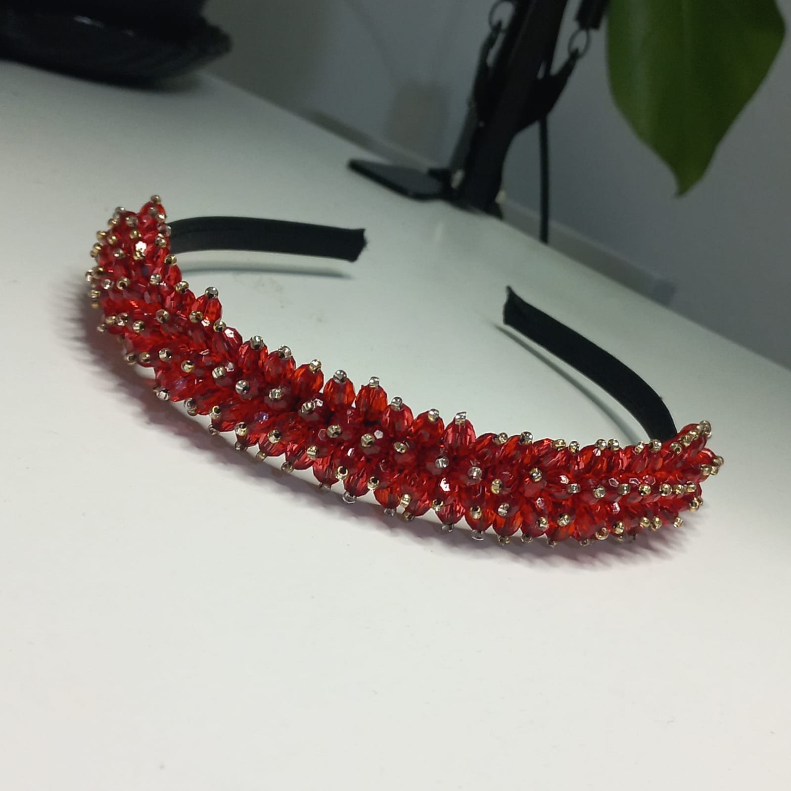 / Bandeau en perle rouges : bijoux de tête de mariage